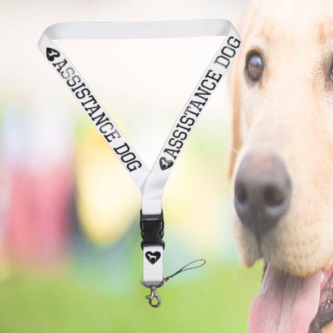 -White assistance dog lanyard